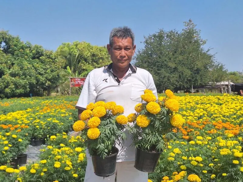 มุกดาหาร ตรุษจีน “รวย” ต้นดาวเรืองดอกไม้สีเหลืองทองแทนความรุ่งเรือง