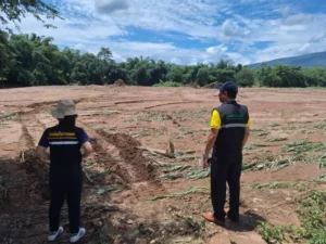 วันที่ 14 กรกฎาคม 2568 นายศักดิ์สิทธิ์ ศรีวิชัย เกษตรจังหวัดน่าน มอบหมายให้นายธนัย บุญมาธิวัฒน์ หัวหน้ากลุ่มส่งเสริมและพัฒนาเกษตรกร ร่วมกับเจ้าหน้าที่สำนักงานเกษตรอำเภอเวียงสา ลงพื้นที่สำรวจ ติดตามสถานการณ์พื้นที่การเกษตรที่ได้รับความเสียหายจากเหตุอุทกภัยในพื้นที่อำเภอเวียงสา ได้แก่ ตำบลกลางเวียง ตำบลส้าน ตำบลขึ่ง ตำบลน้ำมวบ และตำบลไหล่น่าน โดยในขณะนี้ระดับน้ำในพื้นที่ได้ลดลงเข้าสู่ภาวะปกติแล้ว จึงได้แจ้งให้เจ้าหน้าที่ผู้รับผิดชอบตำบลประสานผู้นำ ดำเนินการสำรวจและรายงานความเสียหายเบื้องต้นให้ทางอำเภอและหน่วยงานที่เกี่ยวข้องรับทราบ เพื่อให้การช่วยเหลือฟื้นฟูเยียวยาเกษตรกรต่อไป/บุญยงค์ สดสอาด นายกสมาคมสื่อมวลชนจังหวัดน่าน รายงาน