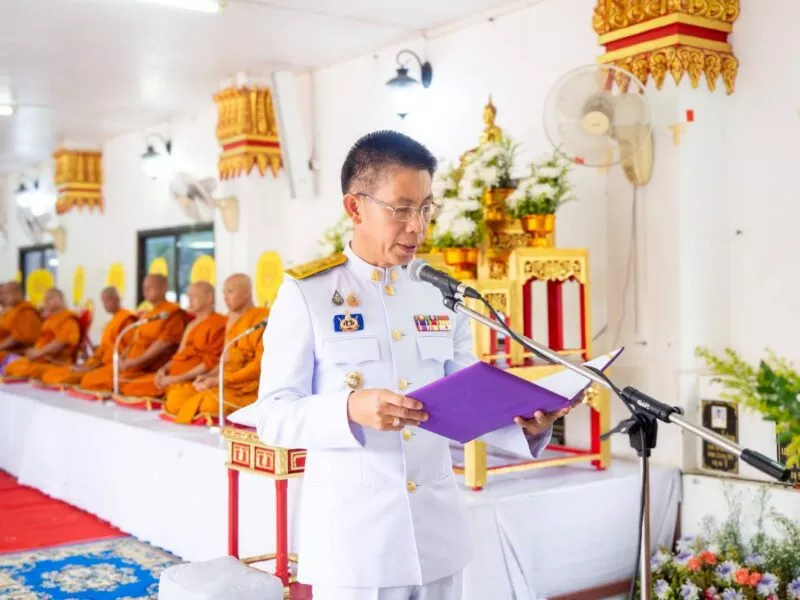 สกลนคร นายวีระ ฤกษ์วาณิชย์กุล รองผู้ว่าราชการจังหวัดสกลนคร เป็นประธานในพิธ๊เจริญพระพุทธมนต์