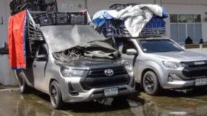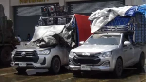 ต่อมาเมื่อวันที่ 18 07 68 เวลาประมาณ 01.00 น. นายกรณ์ชัย ปัญญาวัฒนพงศ์ นายด่านศุลกากรมุกดาหาร พร้อมด้วยเจ้าหน้าที่ศุลกากรหน่วยสืบสวนปราบปรามประจำพื้นที่ภาคตะวันออกเฉียงเหนือ ฝ่ายสืบสวนปราบปรามที่ 2 ส่วนสืบสวนและปราบปราม 1 กองสืบสวนและปราบปราม นำโดยนายสมชาย โชคเฉลิมวงศ์ นักวิชาการศุลกากรชำนาญการ ร่วมกับเจ้าหน้าที่ศุลกากรฝ่ายปราบปราม ส่วนควบคุมทางศุลกากร สำนักงานศุลกากรภาคที่ 2 เจ้าหน้าที่ด่านศุลกากรมุกดาหาร เจ้าหน้าที่ชุดร้อย ทหารพรานที่ 2105 ร้อยกองกำลังสุรศักดิ์มนตรี เจ้าหน้าที่ชุดปฏิบัติการข่าว สำนักการข่าว กอ.รมน. เจ้าหน้าที่หน่วยเฉพาะกิจพญานาคราช เจ้าหน้าที่ด่านตรวจพืชมุกดาหาร เจ้าหน้าที่ด่านกักกันสัตว์มุกดาหาร เจ้าหน้าที่ด่านตรวจประมงมุกดาหาร และเจ้าหน้าที่ตรวจคนเข้าเมือง จ.มุกดาหาร ได้ร่วมกันตรวจค้นรถกระบะบรรทุก ยี่ห้อ ISUZU สีเทา หมายเลขทะเบียน ผต-9212 นครสวรรค์ เป็นผู้ควบคมยานพาหนะ และรถยนต์กระบะยี่ห้อ TOYOTA สีเทา หมายเลขทะเบียน ผน- 5036 อุบลราชธานี เป็นผู้ควบคุมยานพาหนะ ที่เกิดเหตุบริเวณสามแยกไฟแดงนิคมคำสร้อย ถ.ชยางกูร อ. นิคมคำสร้อย จ. มุกดาหาร