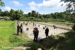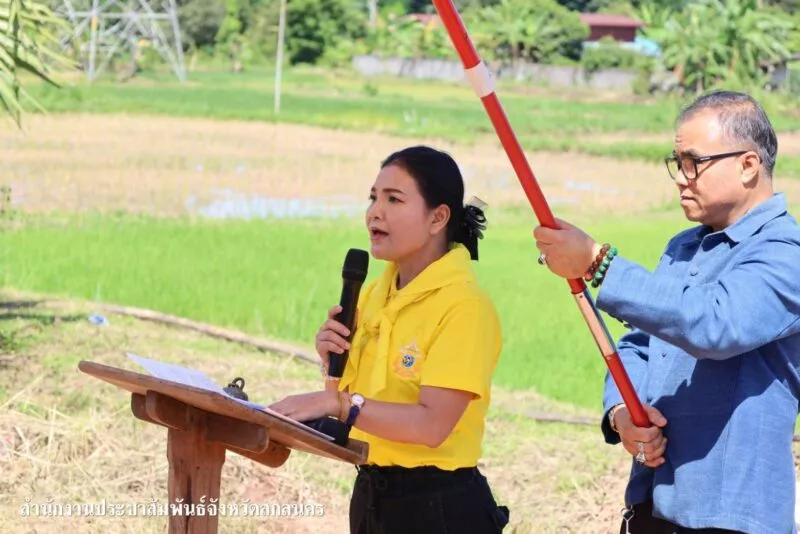 18 ก.ค. 2568 นางสาวจิราภรณ์ เบิกบานดี นายอำเภอเมืองสกลนคร พร้อมด้วย พ.อ.บัลลังก์ เสนีวงศ์ ณ อยุธยา รอง ผอ.รมน.จังหวัดสกลนคร นำบุคลากรในหน่วยงาน ร่วมกับส่วนราชการ องค์กรปกครองท้องถิ่น กำนัน ผู้ใหญ่บ้าน ประชาชนจิตอาสา คณะครูอาจารย์โรงเรียนบ้านลาดกะเฌอ และชาวบ้านในพื้นที่ ร่วมประเพณีลงแขก ตกกล้า ดำนาปลูกข้าวรักษาวัฒนธรรมประเพณีอันดีงาม ตามแนวหลักปรัญาเศรษฐกิจพอเพียง ณ แปลงนาคุ้มบ้านจัดสรร บ้านลาดกระเฌอ หมู่ที่ 8 ต.ห้วยยาง อ.เมือง จ.สกลนคร ประชาสัมพันธ์จังหวัดสกลนคร ภาพ /ข่าว