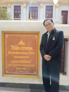 โดย ดร.มหานิยม ได้นมัสการพระบรมพระสารีริกธาตุซึ่งตั้งอยู่ด้านบนชั้น 7 และได้ศึกษาประวัติความเป็นมาของโลหะปราสาท ที่ชั้น 5 เป็นที่นั่งสมาธิ สมถะ ภาวนา ได้นั่งเป็นเวลา 1 ชั่วโมงทำจิตใจให้สงบเพื่อบรรเทาเบาบาง สังโยชสาม โลภ โกรธ หลง ให้ลดลงได้บ้าง
