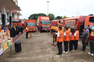 จังหวัดสกลนคร ปล่อยขบวนคาราวานชุดเครื่องจักรกลปฏิบัติการในภารกิจพิทักษพื้นที่ส่วนหลัง( ภัยสงคราม)