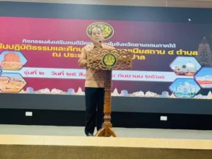 วันนี้ (3 สิงหาคม 2568) ที่ ห้องประชุมชั้น 2 ศูนย์ราชการจังหวัดชายแดนภาคใต้ อำเภอเมือง จังหวัดยะลา ดร.นพ.สมหมาย บุญเกลี้ยง ผู้ช่วยเลขาธิการศูนย์อำนวยการบริหารจังหวัดชายแดนภาคใต้ (ศอ.บต.) เป็นประธานพิธีเปิดการปฐมนิเทศกิจกรรม ส่งเสริมคนดีมีคุณธรรมในพื้นที่จังหวัดชายแดนภาคใต้ เดินทางไปปฏิบัติธรรมและศึกษาแหล่งสังเวชนียสถาน 4 ตำบล ณ ประเทศอินเดียและเนปาล ประจำปี 2568