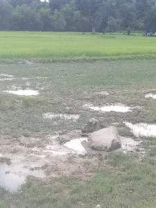 เมื่อชาวบ้านบางรายไปติดต่อ ก็มีคณะกรรมการหมู่บ้านหารือ ผช ผญบ.หรือ ผญบ.บางราย กลับเรียกค่าเสียเวลา ในการออกไปถ่ายรูป แปลงที่นาและไปพร้อมกับเจ้าของนา เมื่อเสร็จก็มีการเก็บเงินรายละ 100 _200 บาท สร้างความเดือดร้อนแก่เกษตร และสงสัยว่า ต้องจ่ายเงินหรือไม่ ทำไมบอกว่าช่วยเกษตรกร แม้จะเป็นเป็นไม่มากเพราะเสียไปแต่ก็คุมสำหรับเงินชดเชยช่วยเหลือ ที่ทางรัฐบาลให้มา แต่ชาวบ้านบางรายบางคนจัดทำเองไม่เป็น ต้องจำใจต้องหามาจ่าย ยิ่งในภาวะเศรษฐกิจแบบนี้เป็นการซ้ำเติมชาวบ้านอีก