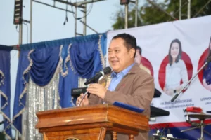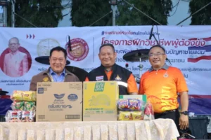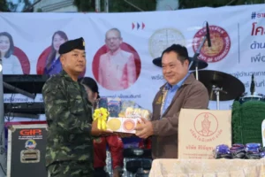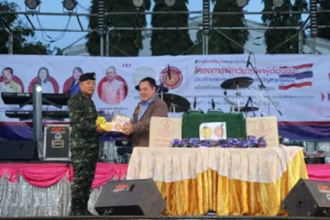 「พันตำรวจเอก ทวี สอดส่อง รัฐมนตรีว่าการกระทรวงยุติธรรม ลงพื้นที่ศูนย์พักพิงชั่วคราวจังหวัดสุรินทร์ นำกรมราชทัณฑ์ จัดมินิคอนเสิร์ต เสก โลโซ สร้างขวัญกำลังใจ-มอบสิ่งของจำเป็นแก่ทหารและผู้อพยพ」
