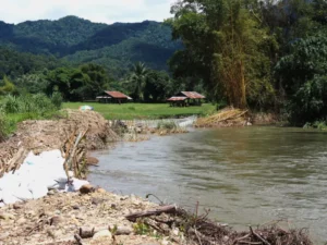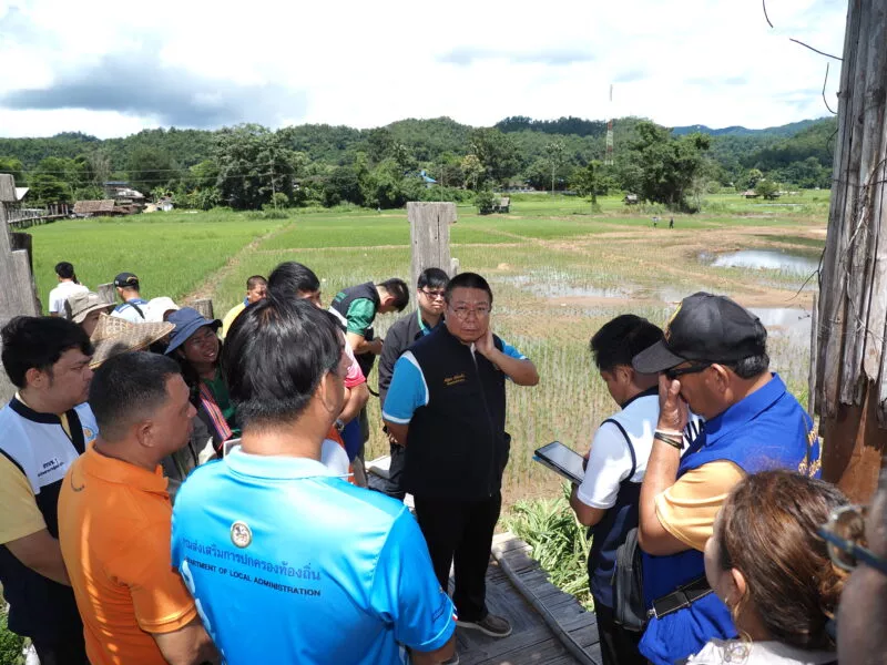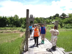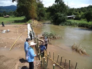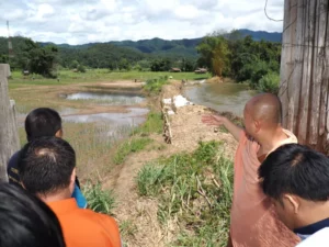 รองผู้ว่าราชการจังหวัดแม่ฮ่องสอน สั่งการให้คณะทำงานวิเคราะห์และติดตามสถานการณ์การป้องกันและแก้ไขปัญหาอุทกภัยน้ำป่าไหลหลากและดินโคลนถล่มจังหวัดแม่ฮ่องสอน ลงพื้นที่ ติดตามการป้องกันน้ำป่าไหลหลาก ท่วมพื้นที่การเกษตร บริเวณสะพานซูตองเป้ วัดภูสมนาราม