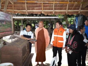 เพื่อติดตามและหาแนวทางป้องกันอุทกภัย น้ำป่าไหลหลาก น้ำท่วมฉับพลันเข้าท่วมพื้นที่การเกษตร บริเวณสะพานซูตองเป้ โดยมีเจ้าอธิการจิตพัฒน์ อคคปญโญ เจ้าอาวาสวัดภูสมณาราม ร่วมหารือและให้คำปรึกษา