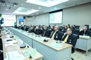 วันพฤหัสบดีที่ 21 สิงหาคม 2568 เวลา 09.00-12.00 นาฬิกา คณะกรรมาธิการทหารและความมั่นคงของรัฐ วุฒิสภา เดินทางไปศึกษาดูงานกองอำนวยการรักษาความมั่นคงภายในราชอาณาจักร นำโดย นายสมบูรณ์ หนูนวล รองประธานคณะกรรมาธิการ คนที่หนึ่ง ว่าที่พันตรี กรพด รุ่งหิรัญวัฒน์ รองประธาน คนที่สาม นายไชยยงค์ มณีรุ่งสกุล เลขานุการและโฆษก นางสาวนวลนิจ หงส์วิวัฒน์ รองเลขานุการ ผู้ช่วยศาสตราจารย์นิฟาริด ระเด่นอาหมัด ประธานที่ปรึกษา นางสาววิธาวีร์ ประทุมสวัสดิ์กรรมาธิการ พร้อมด้วยที่ปรึกษากิตติมศักดิ์ นักวิชาการ เลขานุการ และคณะอนุกรรมาธิการกิจการทหารด้านความมั่นคงแบบองค์รวม ซึ่งได้รับการต้อนรับจากพลเอก ธงชัย รอดย้อย เลขาธิการ กอ.รมน. กับคณะผู้บริหาร กอ.รมน. รวมถึงที่ปรึกษากระทรวงมหาดไทยด้านความั่นคง และผู้แทนจากสภาความมั่นคงแห่งชาติ ร่วมประชุมหารือเกี่ยวกับผลการบังคับใช้และแนวทางการแก้ไขกฎหมายความั่นคง ดังนี้