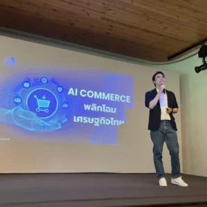 สำหรับนายพุทธิพงษ์ สิริโชดก Chief AI Innovate Committee จาก Max Up AI Innovate Co., Ltd.นำเสนอแนวคิด AI Commerce ที่จะก้าวข้ามยุค E-commerce โดยเปิดเผยว่า “ปัจจุบันมีการค้นหาข้อมูลใน AI Search Engine สูงถึง 30 ล้านครั้งต่อวัน และ 10% ของการค้นหานั้นเกี่ยวข้องกับสินค้าและบริการ ซึ่ง AI จะเข้ามาเป็น ผู้ช่วยส่วนตัว (Assistant) ในการช้อปปิ้ง ค้นหาสินค้าจากหลากหลายแหล่ง และยังผลักดัน AI Affiliate ซึ่ง AI จะช่วยแนะนำสินค้าและคำนวณคะแนน Affiliate ให้กับผู้แนะนำโดยอัตโนมัติ นี่คือโอกาสสำหรับผู้ประกอบการไทยในการสร้างอธิปไตยทางเศรษฐกิจและข้อมูลกลับมาสู่ประเทศไทย