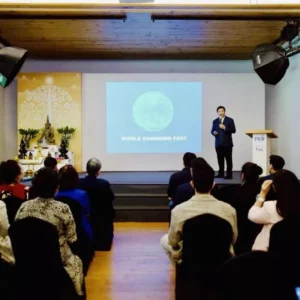 ในขณะที่นายชยดิฐ หุตานุวัชร์ ผู้อำนวยการสถาบันเอฟเคไอไอ.และประธานสถาบันทิวาได้ฉายภาพความผันผวนของโลก (Global Storm) ทั้งด้านภูมิรัฐศาสตร์ สังคมสูงวัย ปัญหาโลกร้อน และการแข่งขันด้านเทคโนโลยีที่รุนแรง โดยเฉพาะการเร่งพัฒนา AI ของจีนและสหรัฐอเมริกา ดังนั้น FKI Thailand ซึ่งย่อมาจาก “Field for Knowledge Integration and Innovation” ที่ดำเนินงานแบบไม่แสวงหาผลกำไร มุ่งเน้นการยกระดับประเทศผ่านองค์ความรู้และนวัตกรรม ผ่านกิจกรรมต่าง ๆ เช่น National Dialogue, National Forum และ Study Tripเป็นต้น ซึ่ง FKII Thailand เน้นย้ำที่ 5 จุดแข็งและนวัตกรรมที่ประเทศไทยควรโฟกัส ได้แก่ 1) Forest & Farm 2) Food Safety & Security 3)Longevity 4) AI Innovation และ 5) Soft Powerโดยระบุว่า “AI ไม่ใช่ยาวิเศษ แต่เป็นหนึ่งในเครื่องมือที่ทรงพลังมาก” ในการแก้ปัญหาและพัฒนาประเทศ