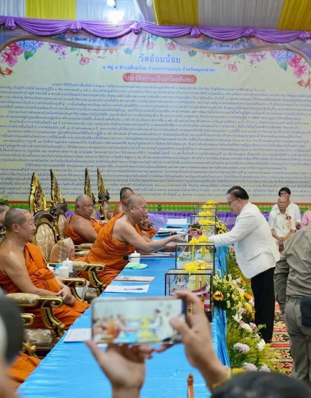 วันที่ 29 สิงหาคม 2568 ที่วัดอ้อมน้อย บ้านรางน้ำใส หมู่ 3 อำเภอกระทุ่มแบน จังหวัดสมุทรสาคร “ดร.มหานิยม เวชกามา” หรือ “ดร..มหานิยม” ผู้ช่วยรัฐมนตรีประจำสำนักนายกรัฐมนตรี (นายสุชาติ ตันเจริญ) ลงพื้นที่ตรวจเยี่ยมและติดตามผลการดำเนินงาน โครงการสร้างความปรองดองสมานฉันท์โดยใช้หลักธรรมทางพระพุทธศาสนา “หมู่บ้านรักษาศีล 5” หนกลาง (จังหวัดสมุทรสาคร) ตามแผนยุทธศาสตร์ชาติ 20 ปี) บูรณาการกับหลักธรรมพระราชทาน ธรรมนาวา วัง