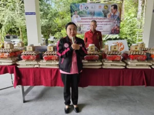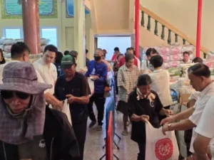มุกดาหาร มูลนิธิการกุศลฯ หอการค้าฯ อบจ. เทศบาลเมืองฯ ร่วม “ประเพณีทิ้งกระจาด” แจกข้าวสารอาหารแห้ง 3,050 ชุด