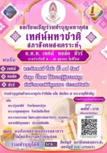 สภาสังคมสงเคราะห์ฯ เชิญร่วมงานบุญใหญ่ “เทศน์มหาชาติ 73 พรรษา” พร้อมพิธีห่มพระธาตุ 12 นักษัตร และพระธาตุสำคัญอีก 8 แห่ง