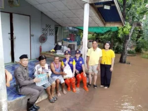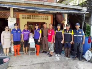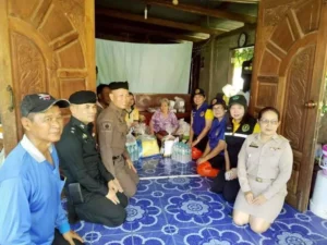 นางวริยาภรณ์ ขวัญวงศ์ ปลัดอาวุโส พ.ต.อ.ศิรพงษ์ เกิดคุณากร ผู้กำกับการสถานีตำรวจภูธรตรอน นายณฐนน พุ่มพวง ปลัดอำเภอ มณฑลทหารบกที่ 35 นายกเทศมนตรีตำบลบ้านแก่ง นายกองค์การบริหารส่วนตำบลน้ำอ่าง กำนัน ผู้ใหญ่บ้าน ผู้ช่วยผู้ใหญ่บ้าน ชุดรักษาความปลอดภัยหมู่บ้าน อสม. ประชาชนจิตอาสา บูรณาการร่วมกันลงพื้นที่ติดตามการให้ความช่วยเหลือผู้ประสบภัย ที่ได้รับผลกระทบจากพายุ ” หนองฟ้า ” โดย มอบถุงยังชีพ น้ำดื่ม และอาหารให้กับผู้ประสบภัยในพื้นที่ ตำบลบ้านแก่ง และตำบลน้ำอ่าง อำเภอตรอน จังหวัดอุตรดิตถ์ จำนวน 24 ชุด พร้อมทั้งให้กำลังใจราษฎร
