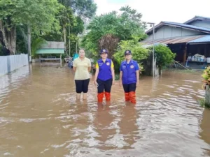 และเจ้าหน้าที่ที่ปฏิบัติหน้าที่ ได้เข้าเยี่ยมศูนย์อพยพ ทต.บ้านแก่ง ณ วัดมงคลนิมิตร หมู่ที่ 2 ตำบลบ้านแก่ง และลงพื้นที่ตรวจสอบระดับน้ำที่สะพานสลิงในพื้นที่ หมู่ที่ 1 , 2 ตำบลบ้านแก่ง โดยมอบนโยบายให้กำนัน ผู้ใหญ่บ้าน ให้ติดตามสถานการณ์น้ำในพื้นที่อย่างใกล้ชิด