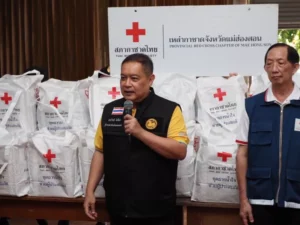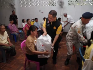 วันที่ 1 กันยายน 2568 ที่วัดห้วยโป่ง ตำบลห้วยโป่ง อำเภอเมืองแม่ฮ่องสอน นายเอกวิทย์ มีเพียร ผู้ว่าราชการจังหวัดแม่ฮ่องสอน พร้อมด้วยนายอำเภอเมืองแม่ฮ่องสอน หัวหน้าส่วนราชการ และคณะกรรมการสมาชิกเหล่ากาชาดจังหวัดแม่ฮ่องสอน ลงพื้นที่มอบชุดธารน้ำใจช่วยผู้ประสบภัย จำนวน 50 ชุด จากสำนักงานบรรเทาทุกข์และประชานามัยพิทักษ์ สภากาชาดไทย โดยมอบให้ผู้ประสบภัยในพื้นที่หมู่ 1 ตำบลห้วยโป่ง พร้อมทั้งมอบเงินช่วยเหลือครอบครัวผู้เสียชีวิต 1 ราย นายวรรณโณ ศรีชัย จำนวน 10,000 บาท โดยเหล่ากาชาดจังหวัดแม่ฮ่องสอน เพื่อช่วยเหลือบรรเทาความเดือดร้อนในเบื้องต้น