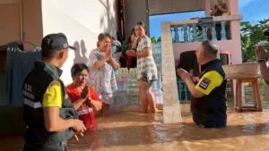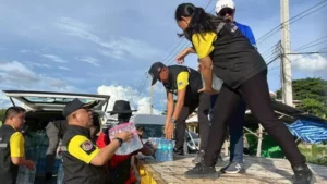 เมื่อ 1 ก.ย. 68 เวลา 1530 – 1930 ณ พื้นที่บ้านหัวก๊ก และหมู่บ้านใกล้เคียง ต.วังทอง อ.เมือง จว.พ.ล. พ.อ. นพดล วัชรจิตบวร รอง ผอ.รมน.จังหวัด พ.ล.(ท.) และเจ้าหน้าที่ กอ.รมน.จังหวัด พ.ล. ร่วมกับ ชมรม พสบ.ทภ.3 รุ่นที่ 6 ประกอบด้วย บจก.หลังคาเหล็ก ฉนวนพียูโฟม และ บจก.Laundry Land ร่วมกันเข้าให้การช่วยเหลือเร่งด่วนกับพี่น้องประชาชนผู้ประสบอุทกภัย เนื่องจากแม่น้ำวังทองล้นตลิ่งไหลบ่าเข้าท่วมบ้านเรือนประชาชนในช่วงสายๆของวันดังกล่าว จำนวนกว่า 40 ครัวเรือน โดยได้มอบสิ่งของเครื่องอุปโภค – บริโภค และน้ำดื่ม จำนวน กว่า 200 แพค เพื่อให้การช่วยเหลือแบ่งเบาความเดือดร้อนในขั้นต้นกับให้กับพี่น้องประชาชนผู้ประสบภัย และจะประสานบูรณาการร่วมกับหน่วยงานที่เกี่ยวข้องเพื่อเข้าให้การช่วยเหลือเพิ่มเติมอีกต่อไป กอรมน.ช่วยเหลือประชาชน ปรีชา นุตจรัส รายงานข่าว พิษณุโลก