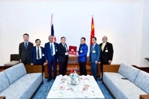 วันพฤหัสบดีที่ 4 กันยายน 2568 เวลา 08.30 นาฬิกา พลเอก สวัสดิ์ ทัศนา ประธานคณะกรรมาธิการทหารและความมั่นคงของรัฐ วุฒิสภา นายสมบูรณ์ หนูนวล รองประธานคณะกรรมาธิการ คนที่หนึ่ง ร้อยตำรวจเอก ฉลอง ทองนะ รองประธานคณะกรรมาธิการ คนที่สอง ว่าที่พันตรี กรพด รุ่งหิรัญวัฒน์ รองประธานคณะกรรมาธิการ คนที่สาม นายไชยยงค์ มณีรุ่งสกุล โฆษกและเลขานุการคณะกรรมาธิการ ให้การต้อนรับ Maj.Gen..Zhang Linhong ผู้ช่วยทูตทหารสาธารณรัฐประชาชนจีน Col. Zhang Youcheng ผู้ช่วยของผู้ช่วยทูตทหารสาธารณรัฐประชาชนจีน และ Col.Zhao Jian ผู้ช่วยของผู้ช่วยทูตทหารสาธารณรัฐประชาชนจีน ทำหน้าที่ล่ามฝ่ายจีน ในโอกาสเข้าเยี่ยมคารวะและแลกเปลี่ยนความคิดเห็น เรื่อง กรอบความร่วมมือด้านความมั่นคงระหว่างกองทัพไทยกับกองทัพจีน รวมทั้งการตอบข้อซักถามและหารือ ณ ห้องรับรองพิเศษ 207 ชั้น 2 และเยี่ยมชมวุฒิสภา ณ ห้องรับฟังการประชุมสำหรับประชาชน ชั้น 4 จากนั้น เข้าสักการะพระบรมราชานุสาวรีย์รัชกาลที่ 7 ชั้น MB1 และชมพิพิธภัณฑ์รัฐสภา