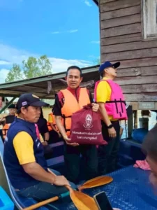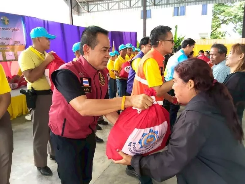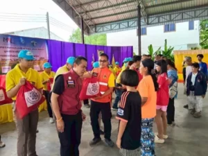 มอบสิ่งของ (ถุงยังชีพ) ตามโครงการ “น้ำพระทัยพระราชทาน” และโครงการ “หนึ่งใจ…ช่วยเหลือผู้ประสบภัย”