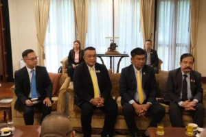 จากนั้น นางสาวมรกต ศรีสวัสดิ์ เอกอัครราชทูต ได้มีการแลกเปลี่ยนข้อคิดเห็นร่วมกับคณะกรรมาธิการเกี่ยวกับการเสริมสร้างความสัมพันธ์ในโอกาสครบรอบ 75 ปีแห่งการสถานปนาความสัมพันธ์ทางการทูตไทย-ลาว (75th Anniversary Thailand-Laos Diplomatic Relations) ซึ่งเริ่มต้นเมื่อวันที่ 19 ธันวาคม 2493โดยที่ทั้งสองประเทศมีความเห็นพ้องที่จะเร่งขับเคลื่อนความร่วมมือไทย – ลาว ให้เจริญก้าวหน้าไปด้วยกัน และส่งเสริมความกินดี อยู่ดีของประชาชนใน 3 ด้านหลัก ได้แก่ (1) เสริมสร้างให้พื้นที่ชายแดนของทั้งสองประเทศมีความมั่นคง เช่น เรื่องยาเสพติด เห็นพ้องที่จะเพิ่มความเข้มข้นของความร่วมมือ ซึ่งเป็นวาระแห่งชาติของทั้งสองประเทศ ปัญหาแก๊งคอลเซ็นเตอร์ ไทยและ สปป. ลาว ต้องร่วมมืออย่างใกล้ชิดยิ่งขึ้น โดยถือเป็นปัญหาร่วมกันในภูมิภาค เป็นต้น (2) สร้างการเจริญเติบโตและความมั่งคั่งร่วมกัน โดยด้านการค้า เห็นพ้องที่จะบรรลุเป้าหมายการค้าทวิภาคีที่ 11,000 ล้านดอลลาร์สหรัฐ ภายในปี 2570 (3) สร้างเสริมสายสัมพันธ์พิเศษระดับประชาชน ไทยและ สปป. ลาว มีความสัมพันธ์ที่ดีและยาวนาน และประชาชนสองฝั่งก็มีความผูกพันเป็นดั่งเครือญาติ ซึ่งในโอกาสครบรอบ 75 ปี ความสัมพันธ์ทางการทูตไทย-ลาว ทั้งสองฝ่ายจะจัดกิจกรรมเพื่อฉลองวาระพิเศษนี้ตลอดทั้งปี