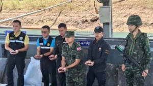 กระทั่งเจ้าหน้าที่ชุดจับกุมเห็นชายฉกรรจ์ประมาณ 18-20 คน กำลังแบกสิ่งของซึ่งเป็นกระสอบสีขาวจากเรือเหล็กที่จอดอยู่ริมฝั่งแม่น้ำโขง เจ้าหน้าที่ได้ขับเรือเข้าไปประชิดเรือบรรทุกสิ่งของ กลุ่มชายฉกรรจ์เห็นเรือเข้าหน้าที่ได้วิ่งหลบหนีอาศัยความชำนาญในพื้นที่หลบหนีไปได้