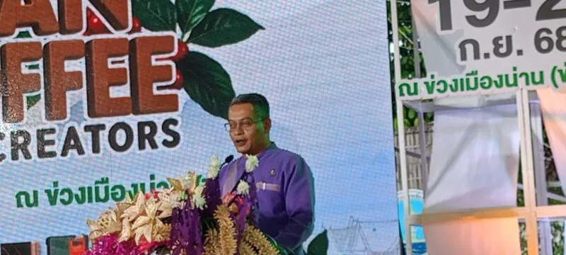 จังหวัดน่าน โดย สำนักงานอุตสาหกรรมจังหวัดน่าน ขนผู้ประกอบการกาแฟน่านกว่า 24 ร้านกาแฟดังทั่วจังหวัดน่าน พร้อมด้วยเครือข่ายผู้ประกอบการ จังหวัดน่าน รวมกว่า 36 ราย โดยมีผู้ประกอบการที่ได้รับการพัฒนาและเสริมสร้างองค์ความรู้ด้านการแปรรูปกาแฟ เพื่อเพิ่มมูลค่าและเชื่อมโยงตลาด จำนวน 15 ราย นำผลิตภัณฑ์ที่ได้รับการพัฒนา ร่วมทดสอบตลาดผลิตภัณฑ์กาแฟน่าน ระหว่างวันที่ 19-21 กันยายน 2568 ณ ข่วงเมืองน่าน (ข่วงน้อย) โดยมีนายบรรจง ขุนเพชร รองผู้ว่าราชการจังหวัดน่านเป็นประธานในพิธีเปิดงาน
