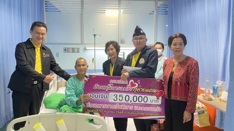 ……. นายสุเกียรติ ด่านพิษณุพันธ์ คณะผู้จัดงานคอนเสิร์ตพิษณุโลก รวมใจสู่ชายแดน ร่วมกับจิตอาสาทุกชมรมและประชาชนชาวพิษณุโลก ได้รวมใจจัดงานคอนเสิร์ต โดยมีวัตถุประสงค์ดังนี้ 1.เพื่อส่งเสริมกำลังใจให้ทหารไทยที่ปฏิบัติหน้าที่ชายแดน ไทย-กัมพูชา 2.เพื่อหารายได้ช่วยเหลือทหารที่บาดเจ็บสาหัส ทุพพลภาพและ สูญเสียอวัยวะ 3.เพื่อแสดงถึงความสามัคคีรวมพลังเป็นน้ำหนึ่งใจเดียวกันของชาวพิษณุโลก ในการปกป้องอธิปไตยของประเทศไทย ………………………..ในวันนี้คณะจากชาวพิษณุโลก รวมใจ ประกอบด้วยสมาคมทหารผ่านศึกจังหวัดพิษณุโลก ชมรมจิตอาสาทำความดีเพื่อแผ่นดิน และจิตอาสาทุกชมรม เหล่ากาชาดจังหวัดพิษณุโลก สมาคมชาวพิษณุโลก ได้เดินทางมาเยี่ยมเป็นกำลังใจ ให้ทหารหาญ ที่ปฏิบัติการสู้รบชายแดน กองทัพภาคที่ 2 และได้รับบาดเจ็บ ณ โรงพยาบาลพระมงกุฎเกล้า กรุงเทพฯ พร้อมทั้งบริจาคเงินให้กับ ทหารหาญทุกท่าน รายละ 25,000 บาท จำนวน 14 ราย รวมเป็นเงิน 350,000 บาท ปรีชา นุตจรัส รายงาน ข่าวพิษณุโลก
