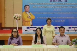 วันนี้ (25 ก.ย. 68) นายสุพิศ พิทักษ์ธรรม นายกองค์การบริหารส่วนจังหวัดสงขลา เป็นประธานในพิธีลงนามบันทึกความร่วมมือกันจัดทำบริการสาธารณะขององค์กรปกครองส่วนท้องถิ่น เรื่อง การบริการสาธารณะด้านสาธารณสุข (ระบบการแพทย์ฉุกเฉิน) ร่วมกับ นางสาวปรินดา ปาลาเร่ รองนายกองค์การบริหารส่วนจังหวัดสงขลา นางปิยนันท์ สิงห์ทอง รองปลัดองค์การบริหารส่วนจังหวัด รักษาราชการแทน ปลัดองค์การบริหารส่วนจังหวัดสงขลา โดยมี คณะผู้บริหาร ประธานสภาฯ สมาชิกสภาองค์การบริหารส่วนจังหวัดสงขลา ในพื้นที่รับมอบ ตลอดจนหัวหน้าส่วนราชการ บุคลากรในสังกัด และเจ้าหน้าที่องค์กรปกครองส่วนท้องถิ่นเข้าร่วม ณ อาคารศรีเกียรติพัฒน์ องค์การบริหารส่วนจังหวัดสงขลา ตำบลพะวง อำเภอเมืองสงขลา จังหวัดสงขลา