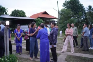 เมื่อวันที่ 27 กันยายน 2568 เวลา 18.00 น.นางอาภรณ์ แสงโชติ หรือป้าแหลง ประธานสภาวัฒนธรรมอำเภอปาย จ.แม่ฮ่องสอน พร้อมด้วยนายเติมศักดิ์ แสงโชติ สามี ให้การต้อนรับ ดร.ชุติพร เสชัง ผู้ว่าราชการจังหวัดแม่ฮ่องสอนคนใหม่ ที่บ้านของป้าแหลง โดยมีนายอุดมศักดิ์ ขาวหนูนา รองผู้ว่าราชการจังหวัดแม่ฮ่องสอน พร้อมด้วย นายผะอบ บินสะอาด ปลัดจังหวัดแม่ฮ่องสอน และนายณพล พาหุมัณโต นายอำเภอปาย นำหัวหน้าส่วนราชการ นายกกิ่งกาชาดอำเภอปาย สภาวัฒนธรรมอำเภอปาย อปท. ในพื้นที่ กำนัน ผู้ใหญ่บ้าน ร่วมให้การต้อนรับและรับประทานอาหารร่วมกัน โดยมีผู้ร่วมงาน 120 คน