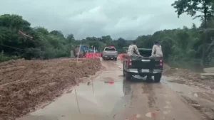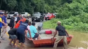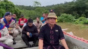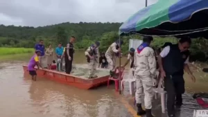 มุกดาหาร – ผู้ว่าฯ ลงพื้นที่ตรวจความเสียหายเส้นทางสัญจรใน 3 หมู่บ้าน ได้แก่ บ้านโพนสว่าง บ้านนาหลัก และบ้านติ้ว ตำบลพังแดง อำเภอดงหลวง โดยถนนสายหลักที่เชื่อมหมู่บ้านระยะทางประมาณ 15 กิโลเมตร ขาดถึง 3 จุด ทำให้ประชาชนสัญจรลำบาก พร้อมสั่งการเร่งช่วยเหลือจากผลกระทบพายุ “บัวลอย”