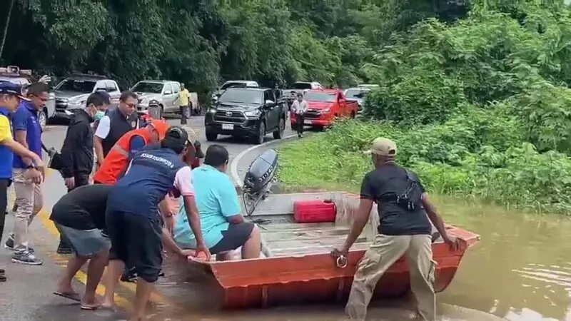 30 09 68 อิทธิพลพายุ “บัวลอย” ส่งผลให้ฝนตกหนักต่อเนื่อง 2 วันที่ที่ผ่านมา ในพื้นที่จังหวัดมุกดาหาร ส่งผลให้น้ำระบายไม่ทันน้ำจากลำห้วยบางทรายเอ่อล้นเข้าท่วมเส้นทางสัญจรใน 3 หมู่บ้าน ได้แก่ บ้านโพนสว่าง บ้านนาหลัก และบ้านติ้ว ตำบลพังแดง อำเภอดงหลวง โดยถนนสายหลักที่เชื่อมหมู่บ้านระยะทางประมาณ 15 กิโลเมตร ขาดถึง 3 จุด ทำให้ประชาชนสัญจรลำบาก