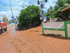 ในขณะที่ระดับน้ำสูง 1.20 เมตร บางจุดเกือบ 2 เมตร และกำลังเพิ่มระดับสูงขึ้นเรื่อย ๆ ประชาชนได้รับความเดือดร้อนกว่า 700 ครัวเรือน.