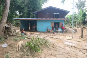 วัดสบหารเหนือ มีน้ำและโคลนเข้ากฏิที่พักของพระภิกษุสามเณรฝั่งทางทิศใต้ของวิหาร