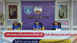 มุกดาหาร/ เมื่อวันที่ 6 ตุลาคม 2568 นายวรญาณ บุญณราช ผู้ว่าราชการจังหวัดมุกดาหาร เป็นประธานจัดแถลงข่าวมหกรรมวันออมแห่งชาติ ประจาปี 2568 ตั้งเป้าระดมเงินออม 30,000 ล้านบาท จัดโดย ชุมนุมสหกรณ์ออมทรัพย์แห่งประเทศไทย จำกัด ร่วมกับ จังหวัดมุกดาหาร และเขตพื้นที่สหกรณ์สมาชิก ชสอ. ภาคตะวันออกเฉียงเหนือ ภายใต้แนวคิด “พลังสหกรณ์ ส่งเสริมความมั่นคงทางการออมให้คนไทย” MUKDAHAN NATIONAL SAVINGS DAY 2025 (The Power of Cooperatives for Thai Financial Security) โดยมี ดร.มะณู บุญศรีมณีชัย ประธานกรรมการ ชสอ. นายวีระพงษ์ ทองผา นายกองค์การบริหารส่วนจังหวัดมุกดาหาร ข้าราชการ สื่อมวลชน เข้าร่วมเป็นเกียรติในการจัดแถลงข่าวการเป็นเจ้าภาพจัดงาน “มหกรรมวันออมแห่งชาติ ประจำปี 2568” ณ ศาลากลาง จังหวัดมุกดาหาร