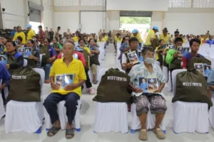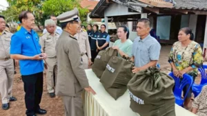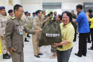 วันที่ 8 ตุลาคม 2568 เวลา 10.30 น. ณ ที่ว่าการอำเภอทองแสนขัน อำเภอทองแสนขัน จังหวัดอุตรดิตถ์ พระบาทสมเด็จพระเจ้าอยู่หัว ทรงพระกรุณาโปรดเกล้าโปรดกระหม่อมให้ นายนุรักษ์ มาประณีต องคมนตรี ร่วมกับมูลนิธิราชประชานุเคราะห์ ในพระบรมราชูปถัมภ์ เชิญถุงยังชีพและสิ่งของพระราชทาน (ถุงยังชีพ) ให้จังหวัดอุตรดิตถ์ จำนวน ๓,๐๐๐ ชุด และสิ่งของพระราชทานสำหรับเด็ก จำนวน 100 ชุด รวม 3,100 ชุด ไปมอบให้อำเภอที่เกิดอุทกภัย และวันนี้มีประชาชนผู้ประสบอุทกภัย ในพื้นที่อำเภอทองแสนขัน เข้ารับมอบสิ่งของพระราชทาน จำนวน 200 คน และสำหรับเด็ก จำนวน 10 คน รวม 210 คน