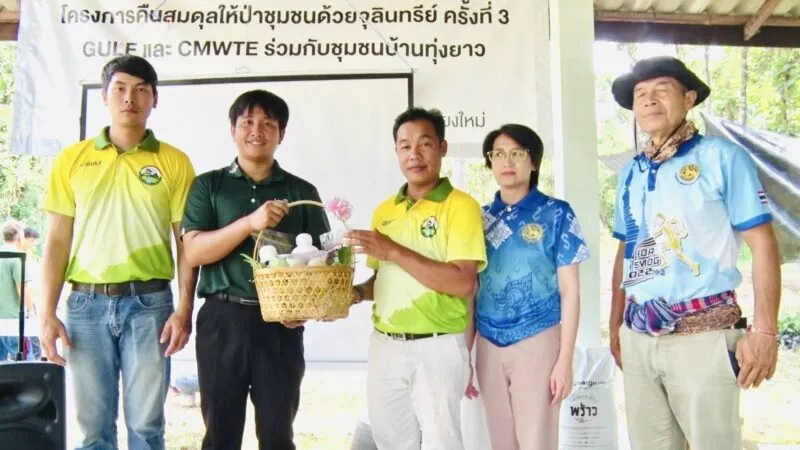 วันที่ 7-8 ตุลาคม 2568 กลุ่มบริษัทกัลฟ์ (GULF) และ บริษัทเชียงใหม่ เวสท์ ทู เอ็นเนอร์จี จำกัด (CMWTE) นำโดย ดร.กฤษณ์ พงษ์เทพิน ผู้ช่วยผู้อำนวยการฝ่ายชุมชนสัมพันธ์ GULF (วิทยากรส่งเสริมโครงการฯ ) ร่วมกับ วิสาหกิจชุมชนอนุรักษ์ป่าต้นน้ำห้วยต้นยาง บ้านทุ่งยาว ม.8 ต.ป่าป้อง อ.ดอยสะเก็ด จ.เชียงใหม่ นำโดย นายสมพงค์ เจริญศิริ กำนันตำบลป่าป้อง อ.ดอยสะเก็ด จ.เชียงใหม่ และประธานวิสาหกิจชุมชนฯ ร่วมกันจัดกิจกรรมต่อเนื่อง ภายใต้โครงการ “ คืนสมดุลให้ป่าชุมชนด้วยจุลินทรีย์ ” ซึ่งส่งเสริมและสนับสนุนจาก GULF–CMWTE ก้าวสู่ปีที่ 3 โดยมีเป้าหมายในการอนุรักษ์ป่าต้นน้ำห้วยต้นยาง ซึ่งมีพื้นที่ 2,307 ไร่ โดยที่ผ่านมาได้ดำเนินงานก้าวหน้าหลายด้าน ได้แก่ การอบรมความรู้ด้านนวัตกรรมจุลินทรีย์ฐานชีวภาพ การจัดตั้งศูนย์เรียนรู้และธนาคารจุลินทรีย์ชุมชน การผลิตสินค้าจากจุลินทรีย์เพื่อรักษาสิ่งแวดล้อม และการเกษตร เพื่อเสริมสร้างรายได้แก่ชุมชน อาทิ เช่น ปุ๋ยหมัก ปุ๋ยน้ำชีวภาพ (อาหารพืช) จุลินทรีย์บำบัดน้ำเสีย และ การเกษตรต่างๆ การอบรมและศึกษาดูงาน การฟื้นฟูป่า ด้วย “ไมคอร์ไรซ่า” การปลูกป่าเพิ่มพื้นที่สีเขียว การทำฝายชะลอน้ำ และ แปลงทดลองป่าไม้เศรษฐกิจด้วยเห็ดไมคอร์ไรซ่า ส่งเสริมครัวเรือนพึ่งตนเอง และปลูกป่าครัวเรือน ฯลฯ ปีที่ผ่านมา ได้ส่งเสริมการรวมกลุ่มจดทะเบียนเป็น “วิสาหกิจชุมชนอนุรักษ์ป่าต้นน้ำห้วยต้นยาง “ กับ สำนักงานเกษตรอำเภอดอยสะเก็ด จ.เชียงใหม่ เพื่อยกระดับการจัดการสร้างกลไกในการบริหารจัดการที่มีประสิทธิภาพและขับเคลื่อนงานอนุรักษ์ป่าชุมชนอย่างป็นระบบมากยิ่งขึ้น ตามหลักการพัฒนาที่ยั่งยืน (Sustainable) โดยกำหนดยุทธศาสตร์เชื่อมโยง 3 องค์ประกอบหลัก คือ ทรัพยากรธรรมชาติและสิ่งแวดล้อม เศรษฐกิจและสังคม ควบคู่กัน รวมถึงการใช้ทรัพยากรป่าไม้ในท้องถิ่น เช่น ใบไม้ เศษไม้ ในป่าซึ่งเป็นเชื้อเพลิงไฟป่าและการย่อยสลายตามธรรมชาติและไฟป่าก่อเกิดคาร์บอนไดออกไซด์ และอื่นๆซึ่งเป็นมลภาวะในอากาศ (ภาวะโลกร้อน) และ เศษวัสดุทางการเกษตรและครัวเรือน นำกลับมาใช้ประโยชน์ในการลดรายจ่ายสร้างผลิตภัณฑ์สร้างรายได้หรือมูลค่าเพิ่มเชิงเศรษฐกิจ และการจัดสรรค์เพื่อเชื่อมโยงพัฒนาสังคมและสิ่งแวดล้อมอย่างยั่งยืน เป็นต้น