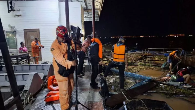 มุกดาหาร – กระชังปลาลอยมาตามน้ำโขง จำนวน 60 หลุม ไหลมาชนแพตำรวจน้ำมุกดาหาร เจ้าหน้าที่เร่งรื้อถอดลดแรงต้านป้องกันแพจม