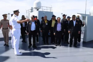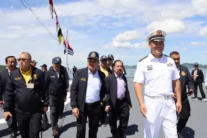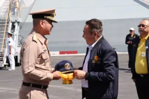 วันศุกร์ที่ 17 ตุลาคม 2568 เวลา 10:00 – 12.00 นาฬิกา พลเอก สวัสดิ์ ทัศนา ประธานคณะกรรมาธิการการทหารและความมั่นคงของรัฐ พร้อมด้วยคณะกรรมาธิการ ที่ปรึกษากิตติมศักดิ์คณะกรรมาธิการ นักวิชาการประจำคณะกรรมาธิการ และคณะอนุกรรมาธิการด้านกิจการทหาร ได้เดินทางลงพื้นที่ศึกษาดูงานเพื่อเยี่ยมชมเรือหมู่เรือฝึกนักเรียนนายเรือสาธารณรัฐประชาชนจีน ณ ท่าเรือจุกเสม็ด ฐานทัพเรือสัตหีบ อำเภอสัตหีบ จังหวัดชลบุรี