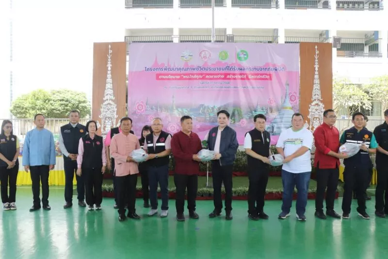 โดยรัฐมนตรีว่าการกระทรวงการพัฒนาสังคมและความมั่นคงของมนุษย์ และรัฐมนตรีช่วยว่าการกระทรวงเกษตรและสหกรณ์ พร้อมคณะฯ ได้เดินทางไปยังวัดผาบ่องใต้ ตำบลผาบ่อง อำเภอเมืองแม่ฮ่องสอน จังหวัดแม่ฮ่องสอน เพื่อมอบชุดยาสามัญประจำบ้านแก่ตัวแทนเกษตรกร เพื่อช่วยเหลือประชาชนในพื้นที่ ตำบลผาบ่อง อำเภอเมืองแม่ฮ่องสอน จำนวน ๒๐๐ ราย พร้อมทั้งมอบปัจจัยการผลิตด้านการเกษตรให้กับผู้แทนเกษตรกร ประกอบด้วย ปุ๋ยหมัก / สารเร่งซุปเปอร์ พด. ชุดสารชีวภัณฑ์พร้อมเมล็ดพันธุ์ผัก เวชภัณฑ์ปศุสัตว์ อาหารปศุสัตว์ และพันธุ์ปลา จากนั้นพบปะเกษตรกร และกล่าวให้กำลังใจประชาชนที่มาต้อนรับ พร้อมรับฟังปัญหาจากผู้ประสบภัย และเยี่ยมชมนิทรรศการมีชีวิต (เกษตรที่สูง) ของศูนย์ส่งเสริมและพัฒนาอาชีพการเกษตรจังหวัดแม่ฮ่องสอน