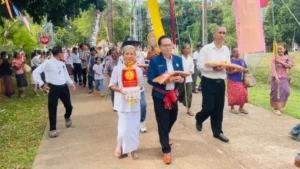 โดย ดร.นิยม เวชกามา ได้ร่วมอนุโมทนาบุญร่วม 5,000 บาท มี “นายเรืองสุวรรณ โยวะ” ที่ปรึกษาประจำตัว ดร.นิยม และคณะ พุทธศาสนิกชนร่วมงานเป็นจำนวนมาก มี “นายอุทัย แป้นโคตร” ผู้ใหญ่บ้านโนนน้ำคำ หมู่ที่ 8 “นายไพบูลย์ ชัยราช” ผช.ผู้ใหญ่บ้าน นำพี่น้องประชาชนร่วมขบวนแห่กฐิน “พระครูสุเขต ธรรมสถิต” #เจ้าอาวาสวัดโคกนาดี #ตำบลแมดนาท่ม #อำเภอโคกศรีสุพรรณ #จังหวัดสกลนคร ที่ปรึกษาเจ้าคณะตำบล เป็นประธานฝ่ายสงฆ์ “#พระอธิการหงส์ทอง จักกะธัมโม” เจ้าอาวาส #วัดสุวรรณธาราราม เป็นพระผู้พิจารณารับผ้ากฐินและปัจจัยเพื่อใช้ในการทำนุบำรุงด้านศาสนาสืบไป ได้ยอดถวายปัจจัยทั้งสิ้นกว่า 1 แสนบาท