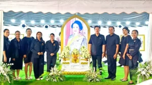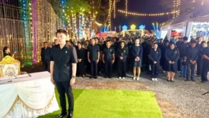 เมื่อค่ำวันที่ 5 พ.ย.68 ที่บริเวณคลองวังพลูสถานที่จัดงาน ประเพณีลอยกระทง ประจำปี 2568 ตำบลธงชัย อำเภอบางสะพาน จังหวัดประจวบคีรีขันธ์ ทางเทศบาลตำบลบ้านกรูด ได้ร่วมจัดพิธีถวายความอาลัย เพื่ออุทิศถวายเป็นพระราชกุศลสมเด็จพระนางเจ้าสิริกิติ์ พระบรมราชินีนาถ พระบรมราชชนนีพันปีหลวง