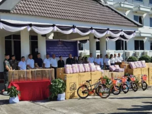 ผ้าห่มกันหนาว จำนวน 500 ผืน,จักรยาน จำนวน 150 คัน ,กระเป๋าเป้ จำนวน 100 ใบ
