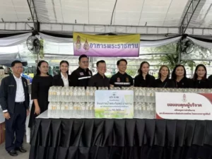 และน้ำดื่มจำนวน 2,500 ขวด ให้กับโครงการน้ำพระทัยพระราชทาน
