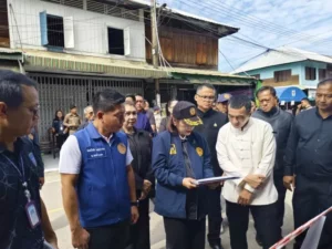 นายสันติ รังษิรุจิ ผู้ว่าราชการจังหวัดอุตรดิตถ์ นายชลิต ธนวัฒน์ รองนายก อบจ. นางสาวชาครียา เศศรษฐเสรี หน.สนง.ปภ.จังหวัดอุตรดิตถ์ นายนิตย์นิชัย บุญสุวรรณ นอภ.พิชัยพร้อมหน่วยงานที่เกี่ยวรุดลงพื้นที่ในจุดเกิดเหตุ เจ้าหน้าที่ได้ติดตั้งเทปกั้นเขตสีขาว–แดงและป้ายเตือน “ห้ามเข้า เขตพื้นที่อันตราย” พร้อมเร่งช่วยอพยพประชาชนและขนย้ายทรัพย์สินออกจากบ้านเรือนที่มีความเสี่ยงสูง เนื่องจากกระแสน้ำยังคงกัดเซาะตลิ่งอย่างต่อเนื่อง และมีเสียงลั่นจากโครงสร้างบ้านเป็นระยะ โดยพื้นที่ที่ได้รับผลกระทบเป็นห้องแถวไม้เก่าแก่อายุกว่า 100 ปี ซึ่งได้รับผลกระทบหนักจากอิทธิพลพายุ “บัวลอย” ที่ทำให้ระดับน้ำเปลี่ยนแปลงและเกิดการกัดเซาะตลิ่ง โดยหลายหน่วยงานเข้าร่วมปฏิบัติการในพื้นที่ อาทิ สำนักงานป้องกันและบรรเทาสาธารณภัยจังหวัดอุตรดิตถ์ ทีมช่างจากองค์การบริหารส่วนจังหวัด หน่วยงานพัฒนาสังคมฯ เจ้าหน้าที่ท้องถิ่น หน่วยกู้ภัย รวมถึงกำนันและผู้ใหญ่บ้าน เพื่อสำรวจความเสียหายและเร่งประสานความช่วยเหลือ