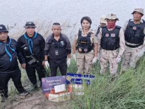 มุกดาหาร- ร้อย ทหารพราน ที่ 2105 สนธิกำลังหน่วยความมั่นคงในพื้นที่ตรวจยึดยาบ้า จำนวน 190,000 เม็ดที่ริมฝั่งแม่น้ำโขงบ้านนาเวียงแก ตำบลนาสีนวน ส่วนผู้ต้องหาหลบหนีไปได้