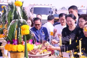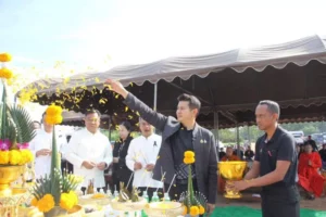 วันที่ 26 พฤศจิกายน 2568 ณ บริเวณริมแม่น้ำน่าน บ้านแสงดาว ตำบลฝายแก้ว อำเภอภูเพียง จังหวัดน่าน นายชัยนรงค์ วงศ์ใหญ่ ผู้ว่าราชการจังหวัดน่าน พร้อมด้วย นายบรรจง ขุนเพชร รองผู้ว่าราชการจังหวัดน่าน องค์กรปกครองส่วนท้องถิ่น หน่วยงานที่เกี่ยวข้อง ร่วมประกอบพิธีบวงสรวงโครงการขุดลอกลำน้ำน่านเพื่อป้องกันและแก้ไขปัญหาอุทกภัยน้ำป่าไหลหลากและน้ำล้นตลิ่ง โดยวิธีการต่างตอบแทนไม่มีการใช้งบประมาณจากทางราชการ ซึ่งมี บริษัทผู้รับเหมา ห้างหุ้นส่วนจำกัด สรรเสริญการสร้าง เป็นผู้ดำเนินการโครงการขุดลอกลำน้ำน่าน โดยใช้วิธีการต่างตอบแทน ซึ่งเป็นมาตรการสำคัญในการเพิ่มประสิทธิภาพการระบายน้ำ แก้ไขปัญหาลำน้ำตื้นเขินและเตรียมพร้อมรองรับสถานการณ์น้ำหลากในพื้นที่เมืองและชุมชนริมลำน้ำ โดยโครงการมีการขับเคลื่อนอย่างต่อเนื่องทั้งในระยะที่ 1 และระยะที่ 2