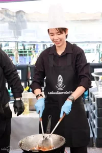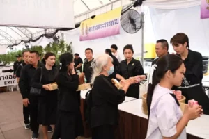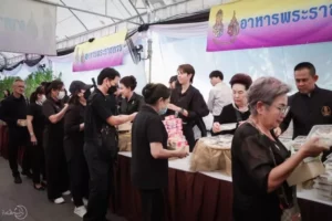 ร่วมประกอบอาหารปรุงสุก (ข้าวไข่เจียวทรงเครื่อง ) และมอบอาหารให้กับประชาชน ที่เดินทางมากราบถวายบังคมพระบรมศพฯ ณ บริเวณเต็นท์อาหารพระราชทาน สนามหลวง (ฝั่งตรงข้ามมหาวิทยาลัยธรรมศาสตร์)