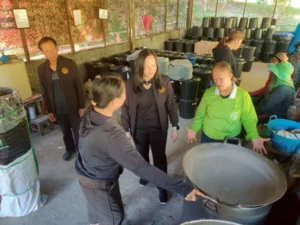 วันที่ 2 ธันวาคม 2568 เวลา 10.30 น. นางณัติกานต์ บุญเจริญ หัวหน้าสำนักงานกองทุนฟื้นฟูและพัฒนาเกษตรกร สาขาจังหวัดน่าน พร้อมด้วยเจ้าหน้าที่สำนักงานฯ ลงพื้นที่อำเภอนาหมื่น เพื่อส่งมอบปัจจัยการผลิต จำนวน 181,800 บาท (เบิกงวดที่ 2) ให้กับองค์กรเกษตรกร กลุ่มเมืองลีพัฒนา ตามที่องค์กรเกษตรกรได้รับอนุมัติโครงการฟื้นฟูและพัฒนาเกษตรกร งบประมาณประจำปี 2568 ประเภทเงินกู้ยืม ชื่อโครงการ “ผลิตสุรากลั่นชุมชนเพื่อจำหน่าย” งบประมาณที่ได้รับ 643,300 บาท สมาชิกเข้าร่วมโครงการ 12 คน ระยะเวลาดำเนินกิจกรรม 7 ปี โดยมีนายเดช ธิเขียว อนุกรรมการฯ จังหวัดน่านเข้าร่วมด้วย ณ ที่ทำการกลุ่มเมืองลีพัฒนา บ้านน้ำอูน หมู่ 1 ตำบลเมืองลี อำเภอนาหมื่น จังหวัดน่าน