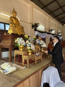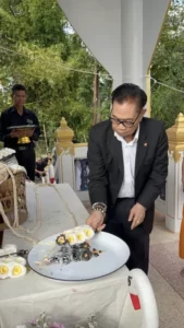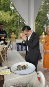 พร้อมกันนี้ได้มอบหมายให้ “คุณครูนลินี เวชกามา” ภรรยา พร้อมด้วย “นางเครือวัลย์ ศิริสวัสดิ์” เลขานุการส่วนตัว และ “นางดวงจันทร์ โยวะ” เป็นตัวแทนประธานงานฌาปนกิจศพและวางผ้าไตรเอกของ “คุณแม่วิลัย ผาจันยอ” ณ เมรุวัดบ้านบึงน้อย ต.บึงทวาย อ.เต่างอย จ.สกลนคร ซึ่งวันนี้มีนายถนอม สมผล นายกเทศมนตรีตำบลงิ้วด้อน นายวิทยา หาดทวายกาญจน์ นายก อบต.บึงทวาย นายสิรภพ สมผล รองนายกเทศมนตรีตำบลงิ้วด้อน กำนัน ผู้ใหญ่บ้าน ผู้สมัครสมาชิกสภาท้องถิ่น และพี่น้องประชาชนเข้าร่วมงานครั้งนี้กันอย่างพร้อมเพรียง